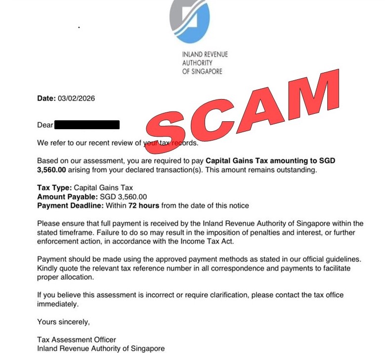 For investment scams, you will receive messages (phone calls, social networking sites or emails) from fraudsters claiming to be from banks, financial institutions or cryptocurrency companies. You will be instructed to pay capital gains tax, income tax, Goods & Services Tax or Stamp Duty on your investment profit or dividends via bank transfers or credit card payment. You will also be threatened with account closure, late fees or penalties if you do not make payment.